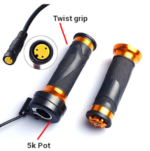 A second reason for not having full electric brakes is that if we loose power for any reason, we still need some way to stop the trike even if not efficiently. So for this second reason, we must retain the front brake as cable driven to either a rim brake or disc brake system. The right hand grip will be changed to a twist throttle as per normal. It's brake lever will be changed to one with a built in micro switch or hall sensor or magnetic reed switch so it can notify the system to cut motor power. But this handle will have a brake cable going to the caliper of the front wheel. It's wiring must pass to the lighting control unit along with the accelerator wiring.